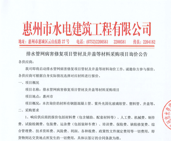 惠州市水電建筑工程有限公司成立于一九六四年四月,隸屬惠州市水務(wù)集團有限公司,是一家國有綜合性施工企業(yè),主營水利水電工程、房屋建筑、市政工程等施工業(yè)務(wù)。公司擁有水利水電工程施工總承包一級、建筑工程施工總承包一級、市政公用工程施工總承包一級、公路工程施工總承包三級,公路路基、路面及建筑裝修裝飾專業(yè)承包二級,環(huán)保工程、機電安裝、河湖整治、輸變電工程專業(yè)承包三級等經(jīng)營資質(zhì)……
